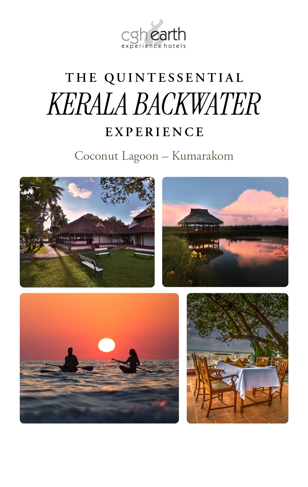 A CGH Earth holiday is unique because of our responsible travel experiences that protect the environment, benefit the community, and adopt the local ethos. Also, every hotel & resort offers unique experiences that can only be enjoyed as our guest. These are our Coconut Lagoon exclusives.
