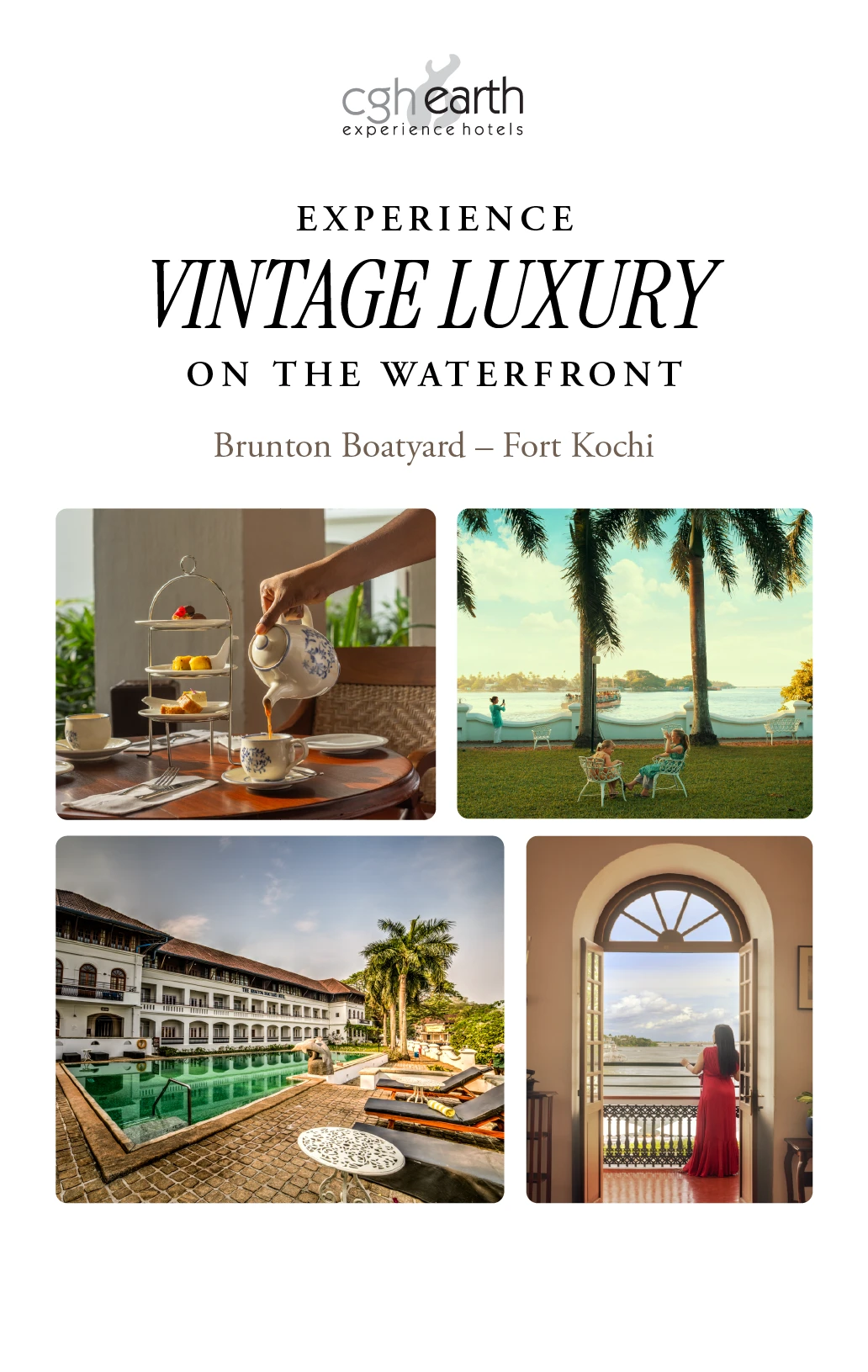 A CGH Earth holiday is unique because of our responsible travel experiences that protect the environment, benefit the community, and adopt the local ethos. Also, every hotel & resort offers unique experiences that can only be enjoyed as our privileged guest. These are heritage hotel Brunton Boatyard exclusives.