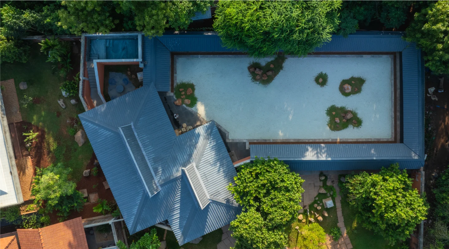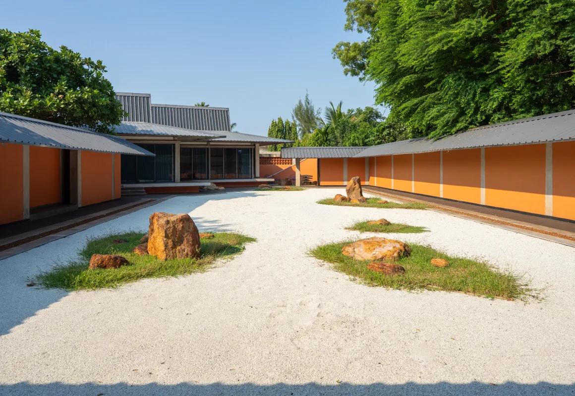 Heiwa, meaning peace and harmony in Japanese, lends its spirit to the Japanese Heiwa Room at Sanctuary Amaidiyana. This space, by architect Popo Pingel, unfolds like an architectural haiku — the roof, shaped like two palms in prayer, offers shelter and devotion, while a Japanese rock garden at its heart invites stillness, balance, and reflection.